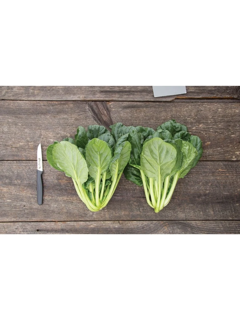 White Stemmed Pak Choy has thick, succulent leaves and a mild brassica flavor. It’s also commonly used as baby leaf in salads and braising